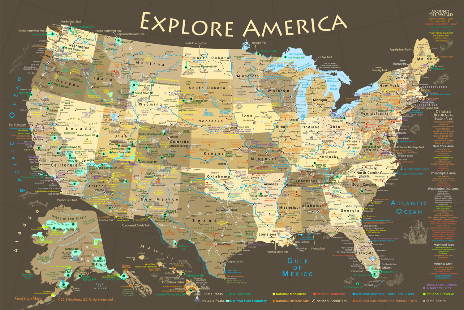 Usa Map Poster Slate Us National Park Posters Geojango Maps