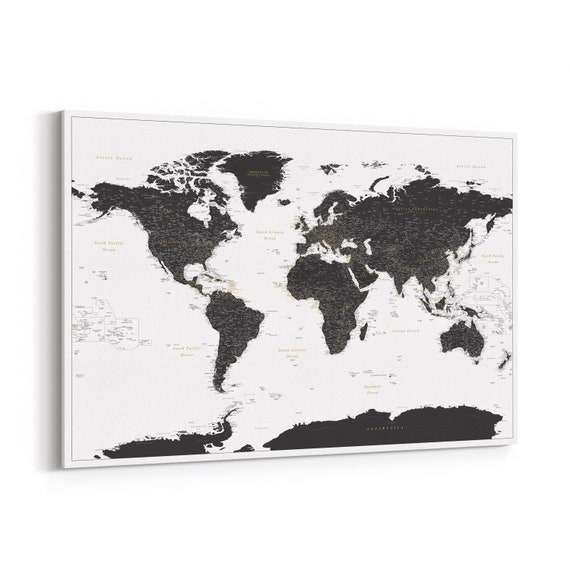Custom Large Highly Detailed Gray World Map Canvas Print Or Push