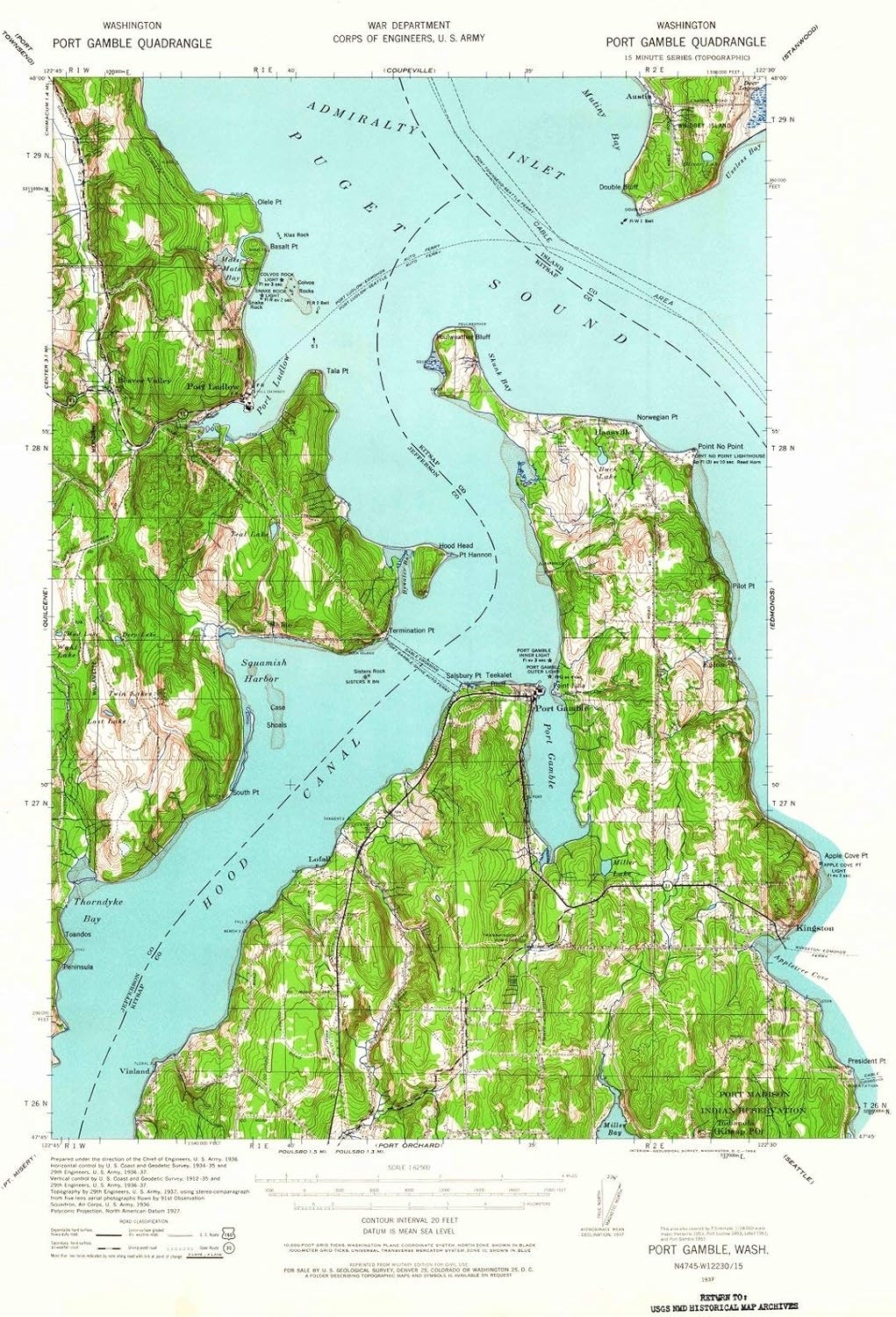 Washington Maps 1937 Port Gamble Wa Usgs Historical Topographic