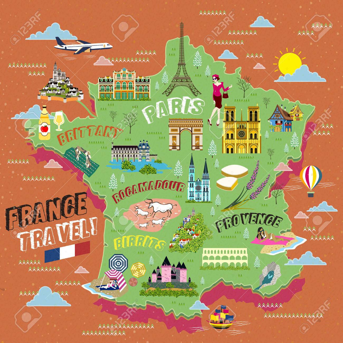 Lovely France Travel Map With Attraction Symbols Royalty Free