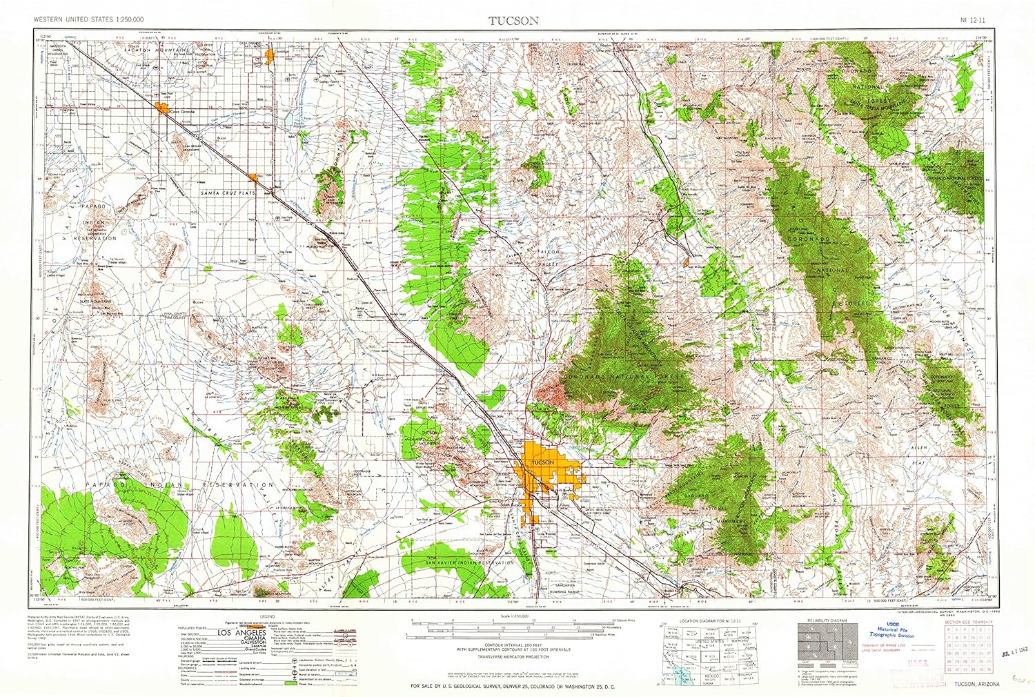 Amazon Com Yellowmaps Tucson Az Topo Map 1 250000 Scale 1 X 2 Degree Historical 1962 Updated 1962 22 X 34 In Paper Sports Outdoors