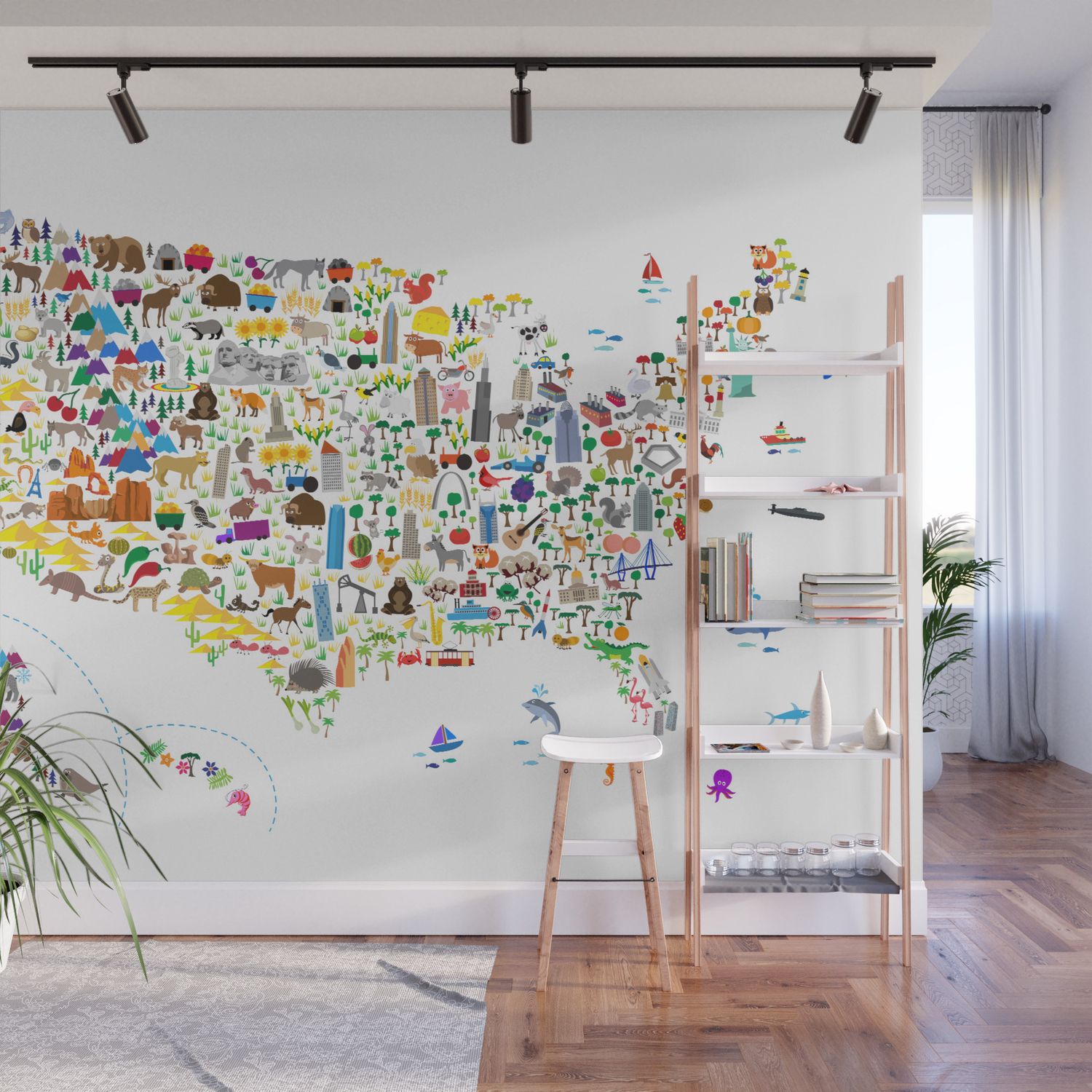 Animal Map Of United States For Children And Kids Wall Mural By