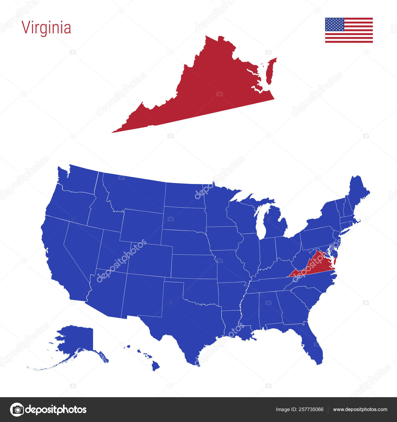 Virginia United States Of America Isolated Map And Virginia State