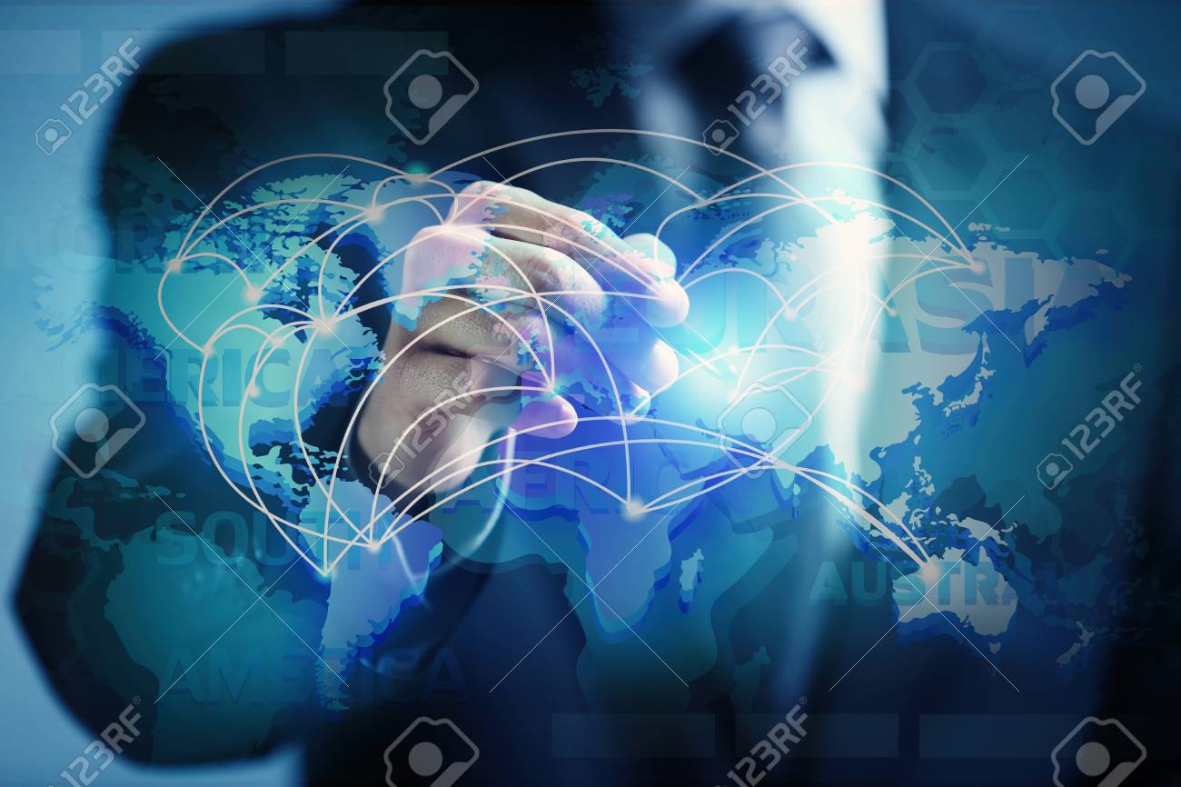 Businessman Working With Virtual World Map Stock Photo Picture