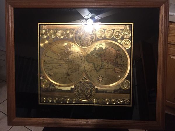 Framed 24k gold foil world map by peter schenk the elder 1645 1715 rare 24k gold foil world map by peter schenk the elder 1645 1715.