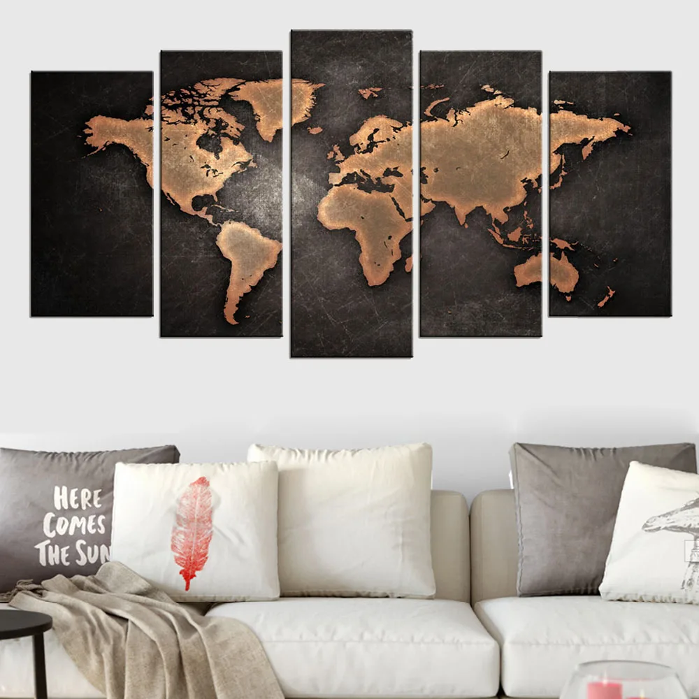Vintage World Map 5 Panel Print Canvas Paintings 5 Pieces Panels